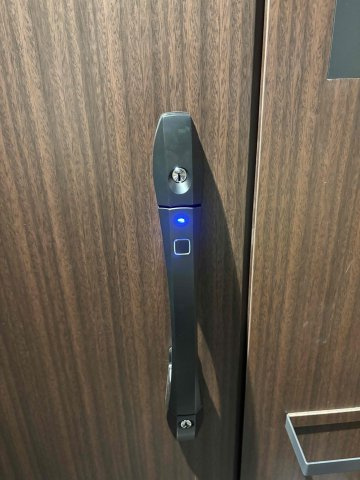 ワンタッチ電子錠です。ボタン一つで鍵を出さずにドアの開閉が可能です。